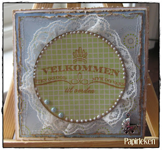 Kortet til Susanne har jeg laget nå i kveld etter å ha hatt en lang dag med forelesninger og gruppearbeid, itillegg til familieliv, så var hodet fortsatt fylt med stigma, marginalisering, avvik etc - kan jo ikke bli lystige kort av slikt! *ler* Prøvde å pimpe det opp med litt fargerikt bakgrunnspapir og litt blonder, men det er ikke alltid at MER gjør det BEDRE.. Er altså ikke fornøyd, kanskje blir det nytt kort i morgen? Kanskje ikke.. :o)